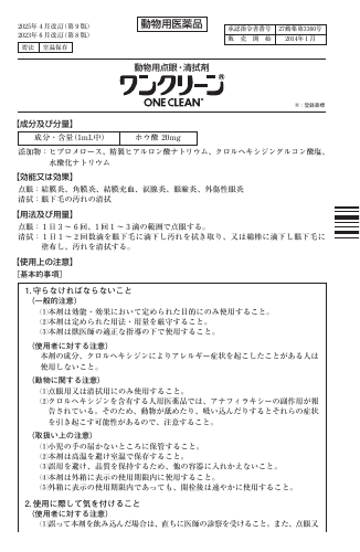 動物用点眼・清拭剤 ®:登録商標 2025年 4 月改訂 (第 9 版) 2023年 6 月改訂 (第 8 版) 貯法 室温保存 承認指令書番号 27動薬第3360号 販 売 開 始 2014年 1 月 動物用医薬品 【成分及び分量】 添加物:ヒプロメロース、精製ヒアルロン酸ナトリウム、クロルヘキシジングルコン酸塩、 水酸化ナトリウム 【効能又は効果】 点眼:結膜炎、角膜炎、結膜充血、涙腺炎、眼瞼