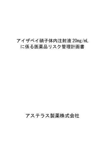 アイザベイ硝子体内注射液 20mg/mL に係る医薬品リスク管理計画書 アステラス製薬株式会社(別紙様式2) アイザベイ硝子体内注射液 20mg/mL に係る 医薬品リスク管理計画書(RMP)の概要 販売名 アイザベイ硝子体内注射液 20mg/mL 有効成分 アバシンカプタド ペゴルナトリ ウム 製造販売業者 アステラス製薬株式会社 薬効分類 871319 提出年月日 令和8年3月27日 1.1