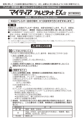 (守らないと現在の症状が悪化したり、 副作用・事故が起こりやすくなる) 1. 次の人は使用しないこと (1) 7 歳未満の小児。 (2) 妊婦または妊娠していると思われる人。 (3) 授乳中の人。 2. 点鼻薬と併用する場合には、 乗物または機械類の運転操作をしないこと (眠気があらわれることがある。 ) 1. 次の人は使用前に医師、薬剤師または登録販売者に相談すること (1) 医師の治療を受けて...